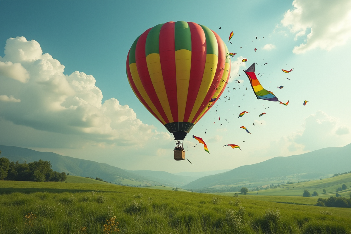 L’éclatement en vol ne fait pas partie du quotidien des montgolfières, mais quand il survient, tout bascule. L’enveloppe, habituellement conçue en nylon ou polyester, cède sous la pression combinée du gaz chauffé au propane et du souffle extérieur. À plusieurs centaines de mètres, la rupture coupe net la portance : la nacelle, privée de soutien, se retrouve livrée à la gravité.