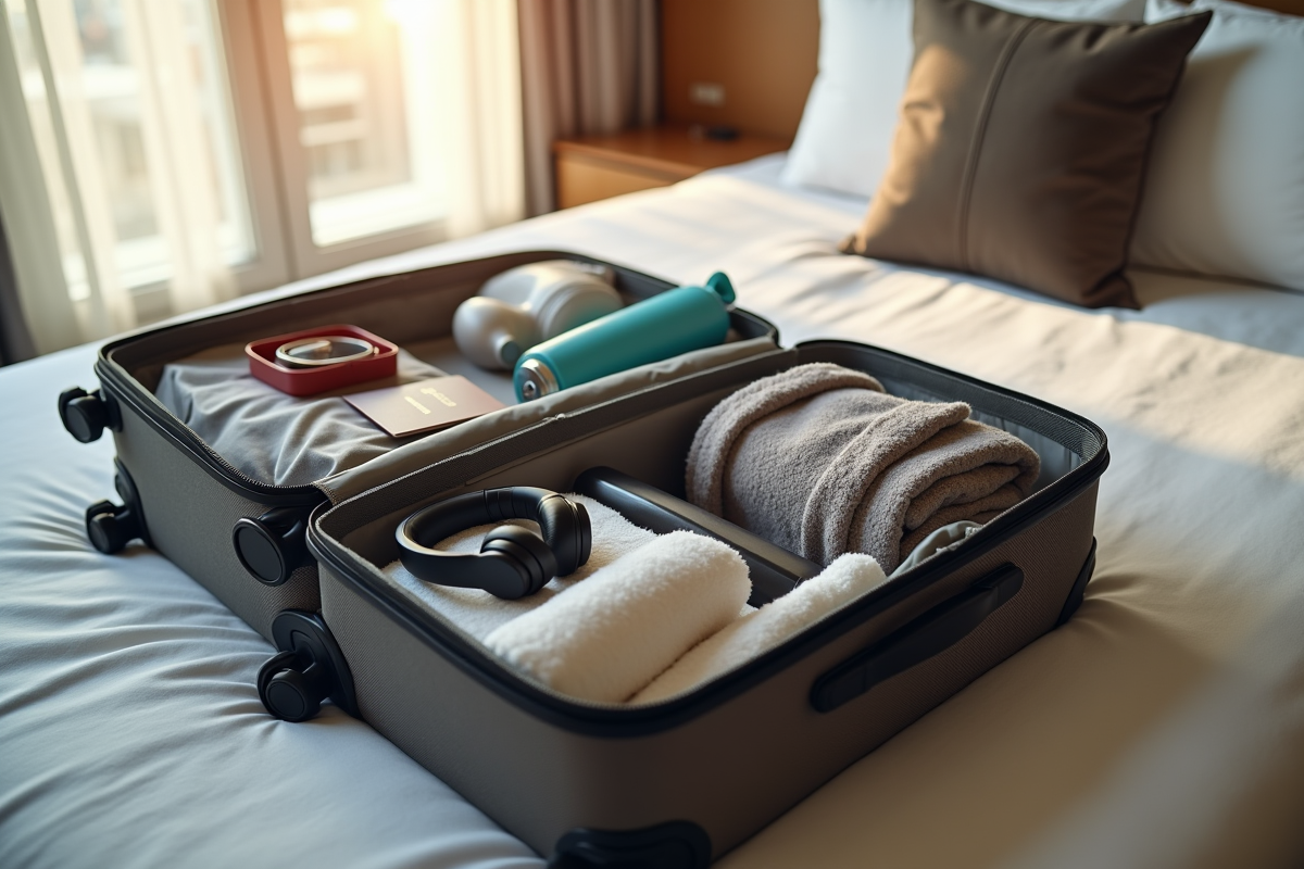 Impossible d’oublier les accessoires électroniques : ordinateur portable, chargeur, batterie externe, adaptateur universel, chacun dans sa pochette protectrice. Ajoutez une liseuse ou votre roadbook digital, et bien sûr des écouteurs, pour transformer les heures d’attente en parenthèse agréable.