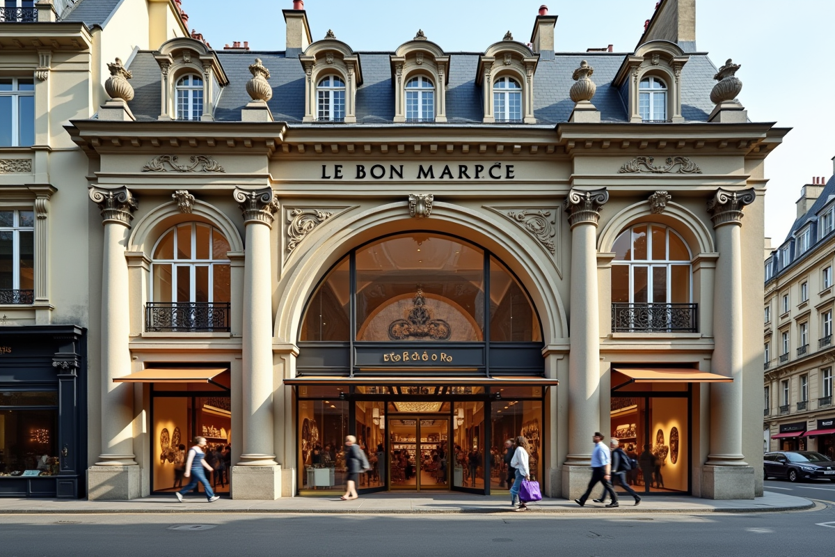 Paris, berceau des grands magasins, dévoile une histoire riche à travers ses enseignes emblématiques. Parmi celles-ci, Le Bon Marché se distingue, inauguré en 1852 par Aristide et Marguerite Boucicaut. Ce magasin, conçu par l’architecte Louis-Charles Boileau, est aujourd’hui propriété du groupe LVMH. Il incarne le raffinement et l’innovation avec sa Grande Épicerie de Paris, située au 38 rue de Sèvres.